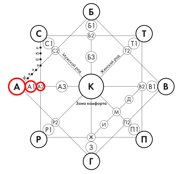 Точка А – то, чему пришел научить обладатель матрицы своих родителей.